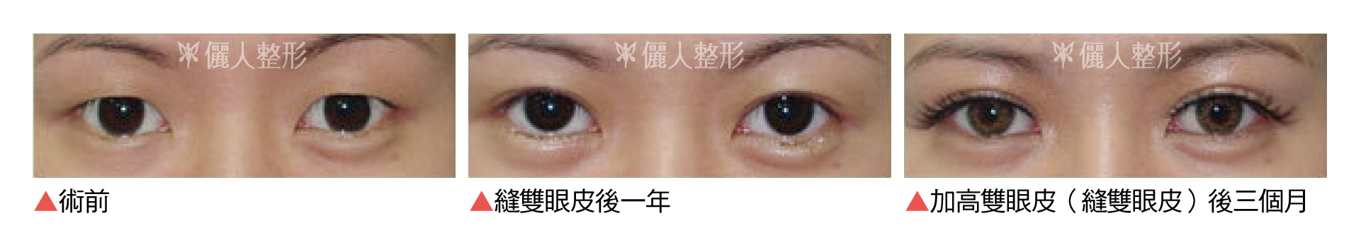 中圖是縫雙眼皮後一年,右圖是加高雙眼皮(縫雙眼皮)後三個月。