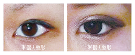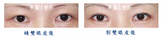 下圖例是在他院做割雙眼皮後,雙眼皮變鬆了(左圖),在本院縫雙眼皮後得到滿意眼型。