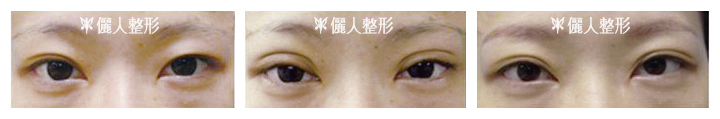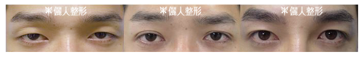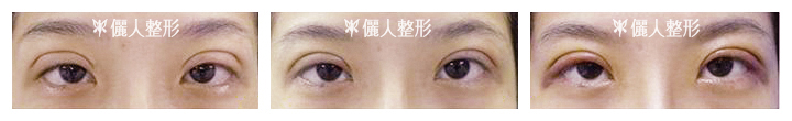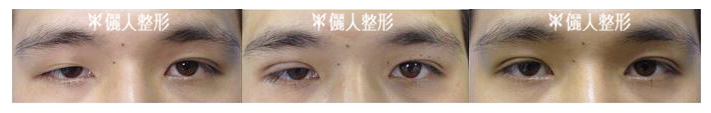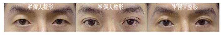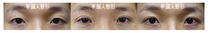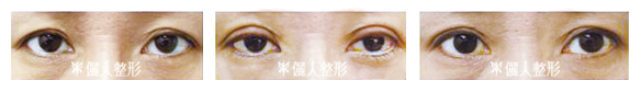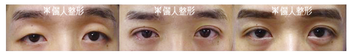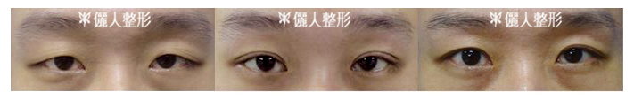 左圖是術前,中圖是術後當下。右圖是術後一個月,二眼對稱多了。