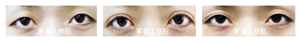 下圖例:左圖是術前,中圖是術後當下,右圖是術後二個月,因左眼脂肪較少,比起右眼,左眼雙眼皮較淺。