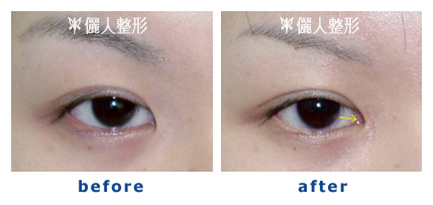 下圖例在縫雙眼皮後一年想加高雙眼皮高度,左圖是術前,