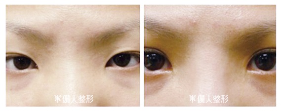 如果是泡泡眼的人建議割雙眼皮較好下例左圖:是縫完雙眼皮後一年照片。