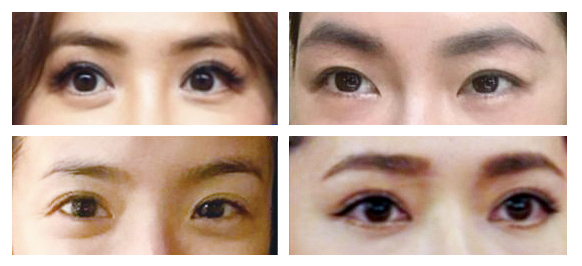 上中圖:是縫雙皮術後,右眼是半開放,左眼是封閉式眼頭。