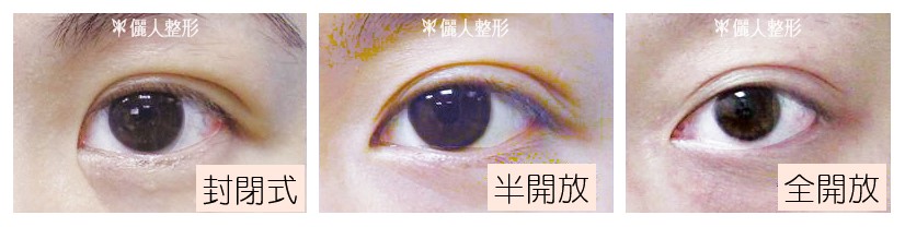 封閉式眼頭,半開放式眼頭,全開放式眼頭