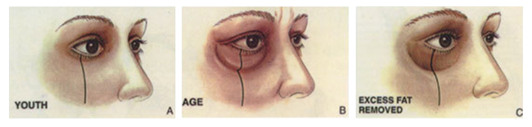 眼袋手術最重要的是下眼皮脂肪的處置。眼袋脂肪的處理有: