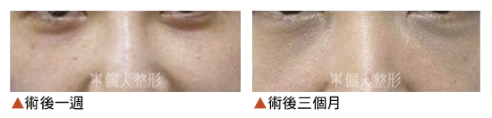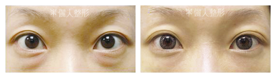 上圖病人同時有眼袋及淚溝問題,建議病人做眼袋手術同時改善眼袋及淚溝。
