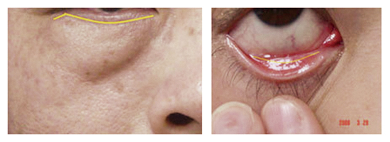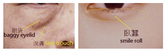 在處理眼袋前,首先得分辨是「眼袋」或是「臥蠶」(別名「笑捲」)(請參考下圖)