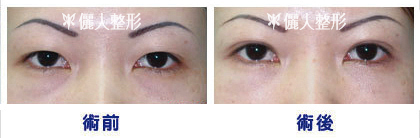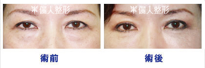 ♦上圖病例:有上眼皮凹陷及眼袋問題,做完上眼皮補脂,拿掉下垂上眼皮及眼袋手術後(右圖是半年後照片),得到病人滿意結果。