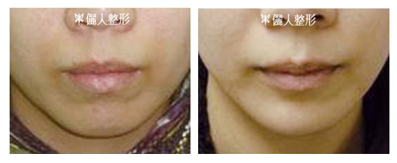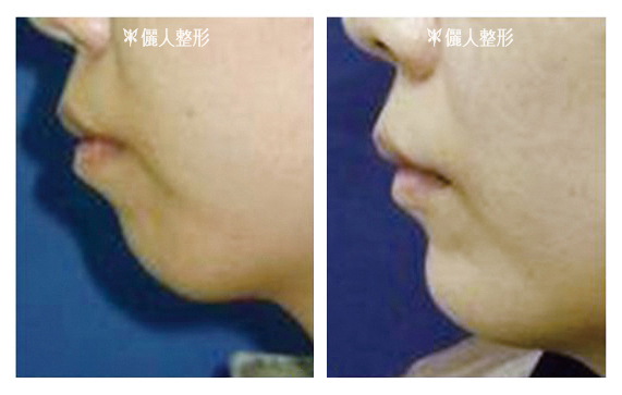 同樣地植入矽膠模型,也可以用來加長下巴,讓臉型顯得較瓜子臉(上圖第二例)。