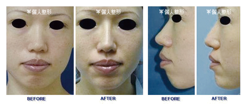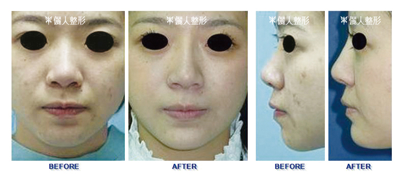 鼻子不夠高,下巴也後縮的人同時做隆鼻及隆下巴手術效果更好。術後整個臉的比例會變更漂亮。下圖三個案例是做完隆鼻及下巴的術前後比較。