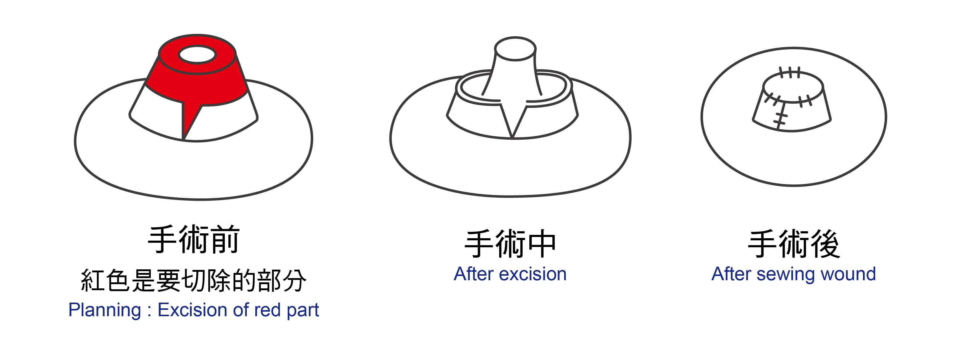 | 生產後由於小孩吸乳的關係,部份的女性乳頭會變大或變長,部份女性乳頭先天就較大,對於有這項困擾的女性,縮乳頭手術可以有效改善粗大或太長的乳頭。縮乳頭手術在局部麻醉下就可以進行。術後的疤看不太出來。下圖是手術的簡圖。 |
