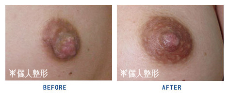 | 以上是右側已做完縮乳頭手術時的比較圖,可以看出乳頭的明顯差距。 |