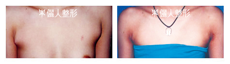 上左圖為副乳手術前。上右圖為手術後。