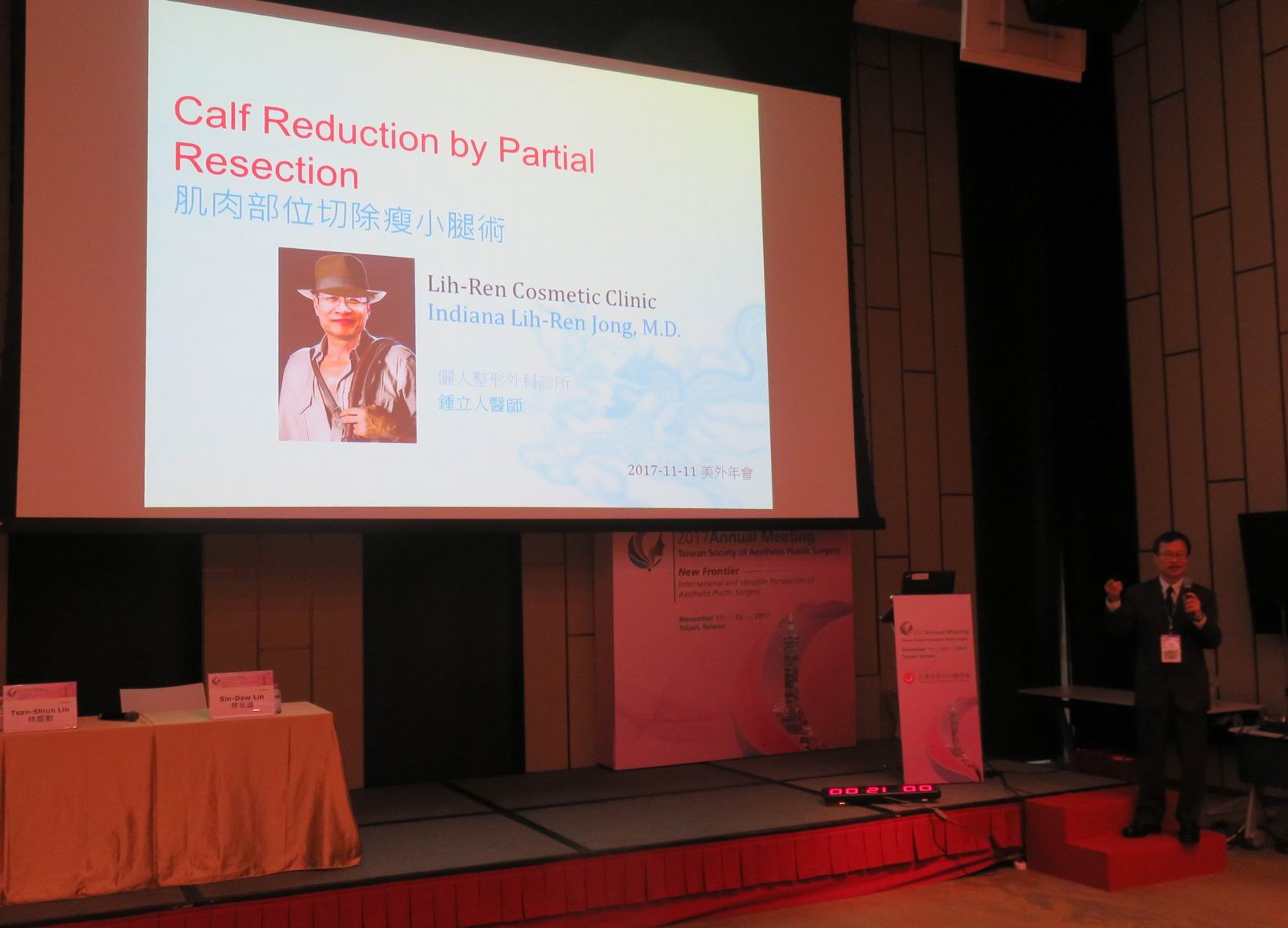 鍾醫師將他十多年瘦小腿的手術成果於101年12月9日(左圖)及106年11月11日(右圖)在台灣美容外科醫學會發表。
