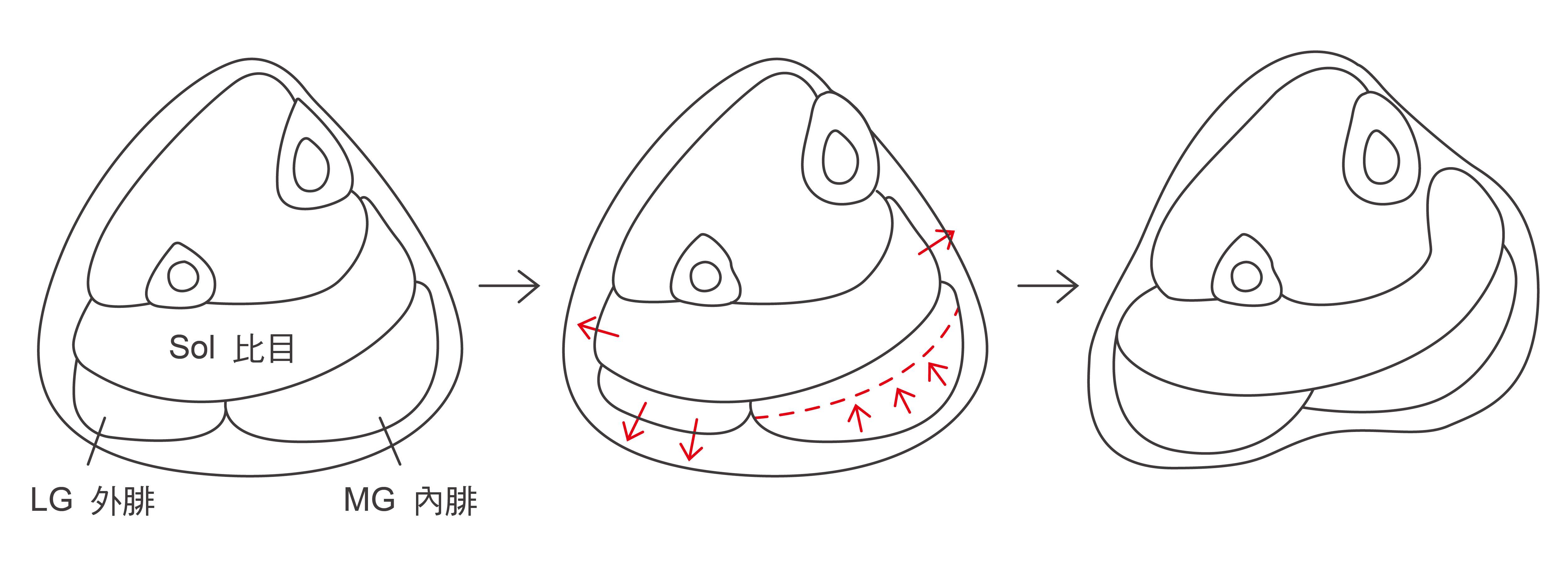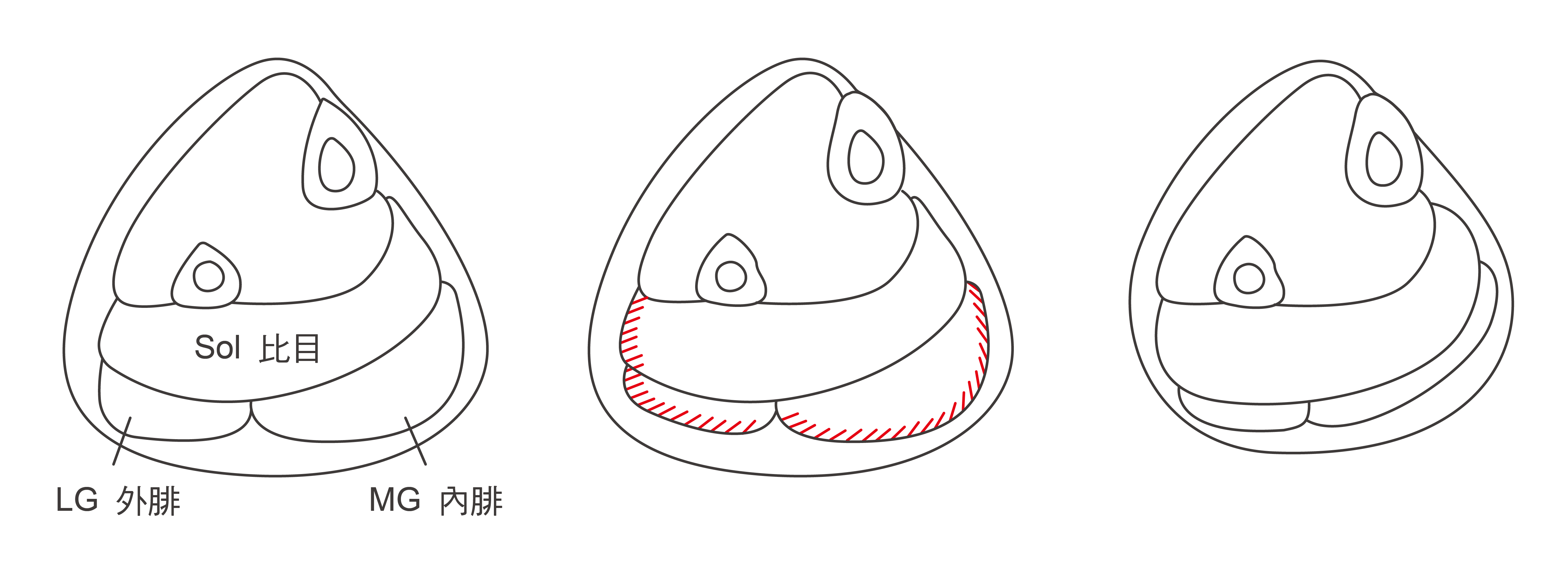 底下用一個簡圖說明切神經對小腿外形的影響。