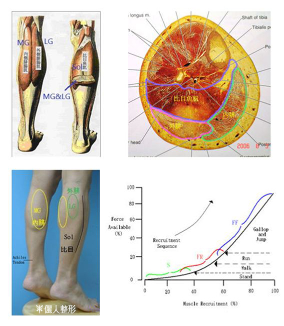 2) 合乎生理,肌肉的功能仍存在,不會有其他肌肉代償性增厚的問題。所以我們可以雕塑內側腓腸肌,外側腓腸肌及比目魚肌。