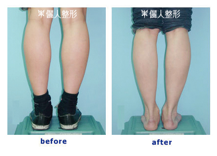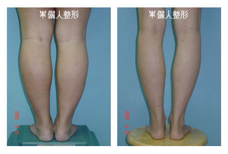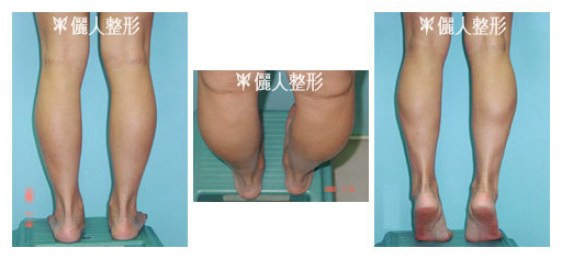 上圖顯示做小腿內腓外腓及比目魚肌三塊肌肉雕塑手術前後的比較圖。