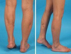 2013在Aesthetic Plastic Surgery 期刊中發表12位因做RF瘦小腿造成馬蹄形足,也就是如下圖左腳跟無法著地的問題。並發現RF在平均1.5年後對小腿肌肉的影響仍未停止。看似比起手術簡單的瘦小腿方法(RF)並不單純。