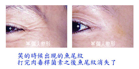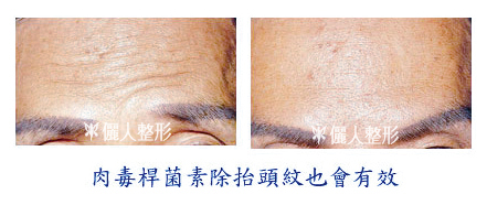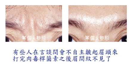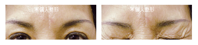 先施打肉毒桿菌素後一週(肉毒桿菌效果要看一週),左圖是沒做表情前,右圖是做皺眉表情後。