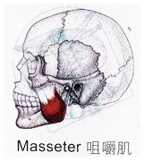 利用肉毒桿菌素可以讓肌肉萎縮的特性,將肉毒打在咀嚼肌內,就可以讓咀嚼肌萎縮,臉就看起來較小(肉毒瘦臉)。肉毒打在小腿肚也可以讓小腿肌肉變小,達到瘦小腿的目的,但效果是暫時的,詳情可見網站「瘦小腿」之介紹。下圖標示咀嚼肌位置及瘦臉效果。