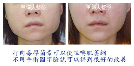 國字臉後咀嚼口香糖。 - 肉毒效果約4天出現,國字臉約3週可感覺咀嚼肌變軟,臉變小。