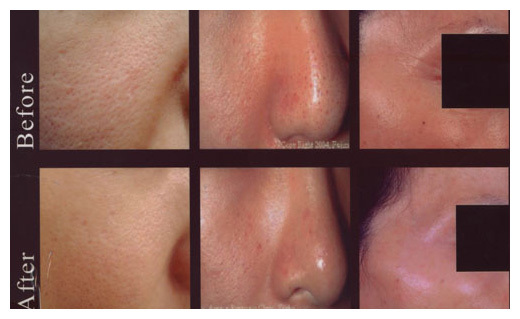 答: 治療前先塗上醫療級碳面膜(如下圖),再利用雷射的皮膚加熱模式(1064柰米加長波),可以刺激皮膚膠原蛋白再生,達到縮小毛孔,緊緻肌膚,撫平細紋等的功效(參見下圖),採用以上黑娃娃的療程治療間隔是三週。如果塗了碳後,雷射設定為 1064柰米加短波的話,就沒有加熱功能,但有去角質,清除粉刺,達到皮膚細緻,臉有光澤的療效。 如果治療前不塗碳,就稱之為白瓷娃娃雷射。