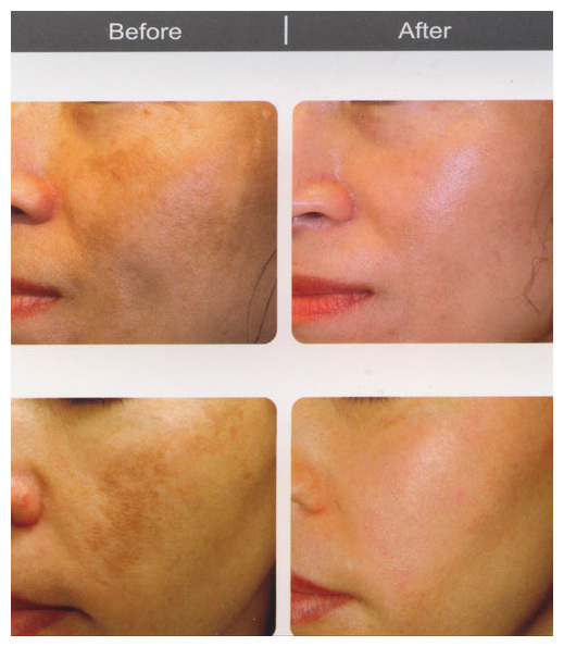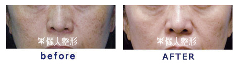 上圖例在做完五次淨膚雷射療程後(治療後不結痂,上班生活正常),膚色由暗沈變白,臉上的斑也變淡很多。