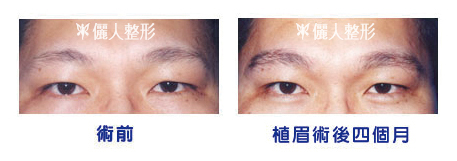 下圖第一例的男生認為也的眉毛外側有點稀疏,或是第二例的女生認為她的眉毛太少,就可以考慮做植眉手術。有時植眉毛搭配除毛(請參考永久除毛的介紹)就可以得到病人希望的眉形。