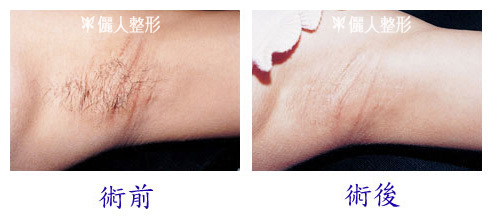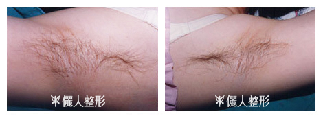 上圖是病人除毛前腋下的照片,下圖是半年後做第四次腋下除毛前的照片,病人追蹤至今已六年(至97年六月)腋毛不再長。