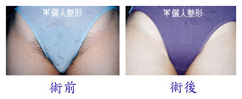 左圖:比基尼線除毛前。右圖:除毛後,追踨至今(至97年六月)已六年,毛不再長。