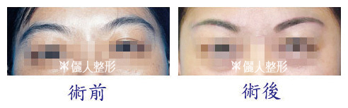 左圖:除毛針修改眉型前。右圖:除毛後,病人從此免除修眉的困擾。除毛後追踨至今(至97年六月)已六年,毛不再長。 -